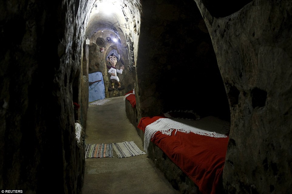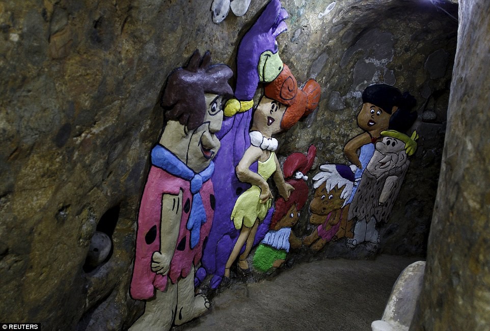 Ngoài ra còn có phòng khách, phòng tắm, phòng ngủ với giường bằng đá, tiện nghi không kém gì những ngôi nhà bình thường khác. Xung quanh các bức tường đều được trang trí bằng những bức tranh nhiều màu sắc sặc sỡ.