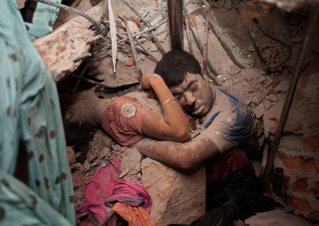 Vào ngày 24/4, một người đàn ông và một người phụ nữ được phát hiện trong đống đổ nát của Rana Plaza, một tòa nhà 8 tầng ở Bangladesh. Hơn 1.100 công nhân nhà máy đã chết khi khu phức hợp sụp đổ