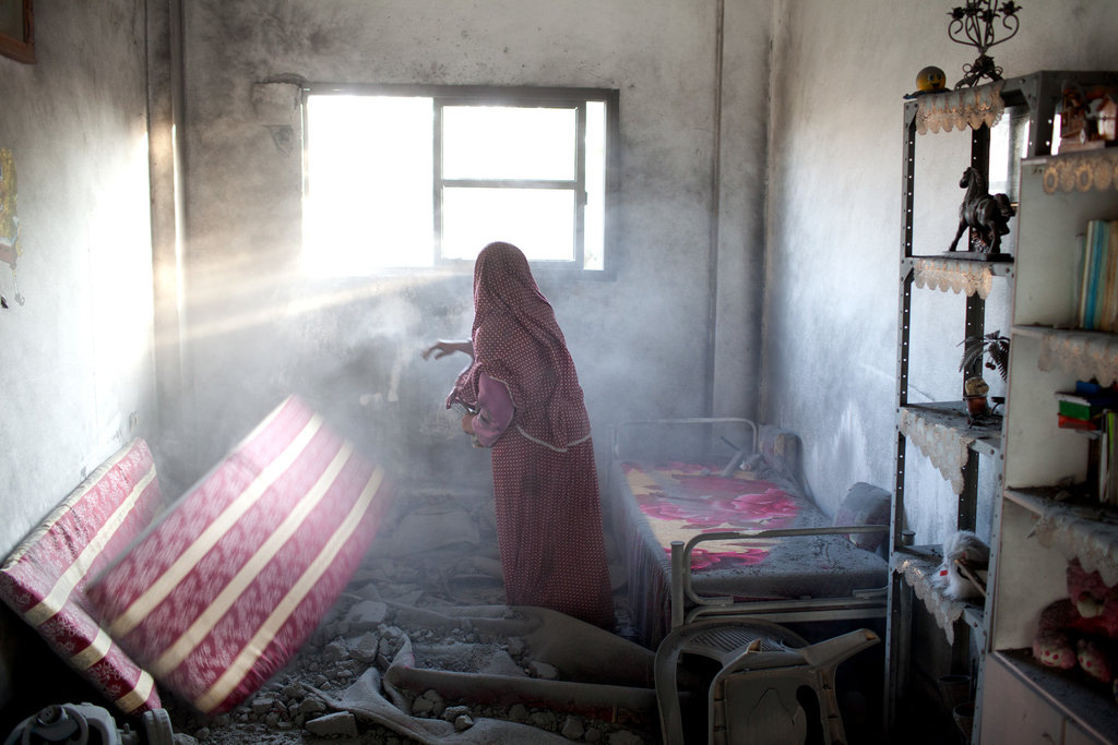 Vào ngày 19/11, một người dân kiểm kê thiệt hại khi quân đội Israel tiến hành không kích chết người trên vùng đất Palestin.