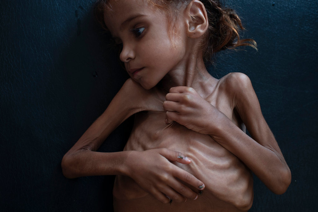 Ngày 18/10, ở Yemen, bé Amal Hussain, 7 tuổi, đã chết vì suy dinh dưỡng ngay sau khi bức ảnh này được chụp. Cuộc chiến do Saudi dẫn đầu ở Yemen đã đẩy hàng triệu người rơi vào tình trạng đói nghèo.
