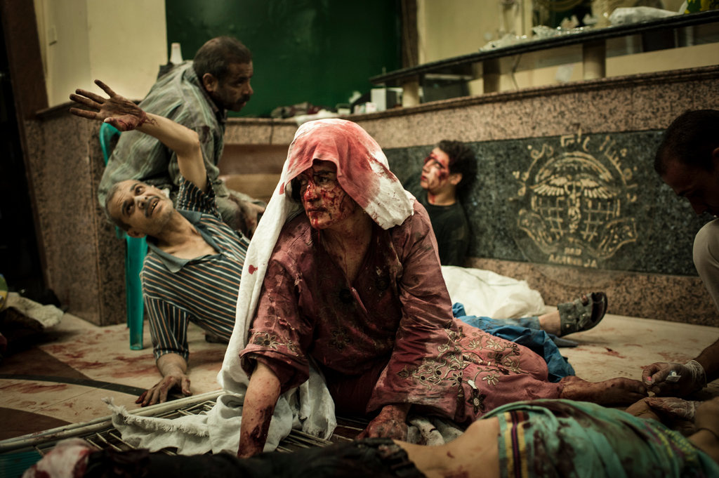 Ngày 15/10, một người phụ nữ ôm người thân bị thương bên trong nhà thờ Hồi giáo đang được sử dụng làm bệnh viện bởi những người biểu tình chống chính phủ.