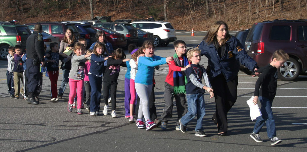 Vào ngày 14/12, sự sợ hãi in trên gương mặt những em học sinh Trường tiểu học Sandy Hook, tiểu bang Connecticut trong vụ thảm sát khiến 26 người chết, trong đó có 20 em học sinh tiểu học.