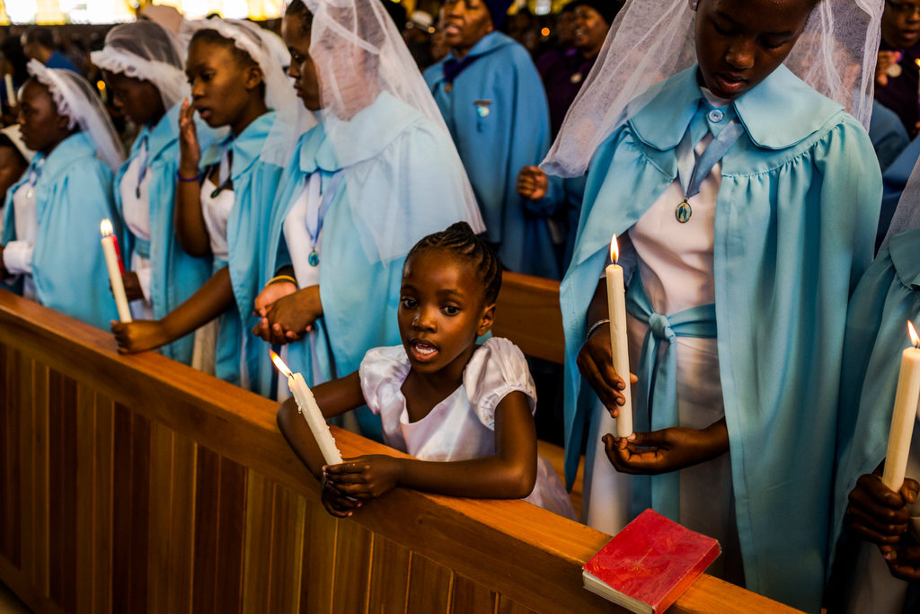 Vào ngày 8/12, giáo dân trẻ tuổi cầu nguyện cho Nelson Mandela trong thánh lễ tại nhà thờ Công giáo La Mã Regina Mundi. Ông Mandela qua đời ngày 5/12 ở tuổi 95.